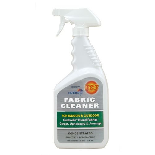 303 Fabric Cleaner This product contains no soaps, detergents or solvents. 303 Fabric Cleaner is your BEST choice for cleaning fabrics, upholstery and carpeting. Non-toxic, biodegradable and rinses residue free. Quickly and safely removes even the most stubborn stains: - Coffee - Oil - Grease - Ink - Berry Juice - Tea - Wine - Blood Use straight or diluted for removing spots, dilute even further for general cleaning.