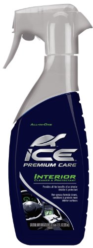 ICE Total Interior Care is a unique “all-in-one” automotive interior care product to clean, shine, and protect all of today's interior soft vinyl, plastic, leather and composite hard surfaces. It now has an improved higher shine! The product has extremely unique performance attributes which combine effective cleaning, while the thick spray formula clings to vertical surfaces. The narrow spray pattern provides better control to those small, tight areas of interior dash details, without the mess of many thin, runny spray cleaners. The cleaning chemistry is very effective on many hard and washable surfaces, it can even be used to remove stains on carpet and fabric. It removes grease, tar, ink, and food stains with just light rubbing. The formula is designed for use with micro-fiber towels which provide lint free cleaning. ICE Total Interior Care is perfect for cleaning large areas, and provides easy one step cleaning without the greasy feel or left over residue of other spray interior protectant products. The state-of-the-art formula contains a combination of chemistries specifically designed to address all of the assaults that age and dirty the interior of a vehicle.